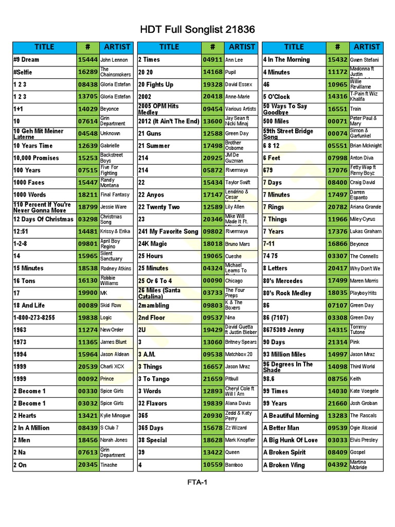 Hdt Full Songlist 21836 P Hyundai Karaoke Player Songlist Volume 21 836 Pdf Musicians Artists