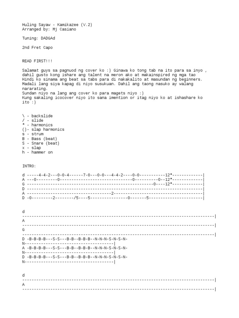 Huling Sayaw Kamikazee Tabs Mj Casiano Arrangement Pdf Refrain Guitars
